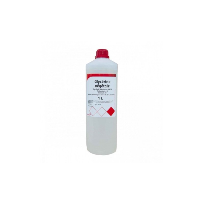 La glycérine végétale, également désignée sous le terme scientifique de glycérol ou propane-1,2,3-triol, est un composé organique naturel obtenu principalement par saponification ou transestérification d'huiles végétales. Il se présente sous la forme d'un liquide incolore, légèrement visqueux, d'odeur neutre et au goût légèrement sucré. Totalement soluble dans l'eau et dans l'alcool, il est parfaitement adapté à une incorporation dans des préparations liquides destinées à l'alimentation animale.