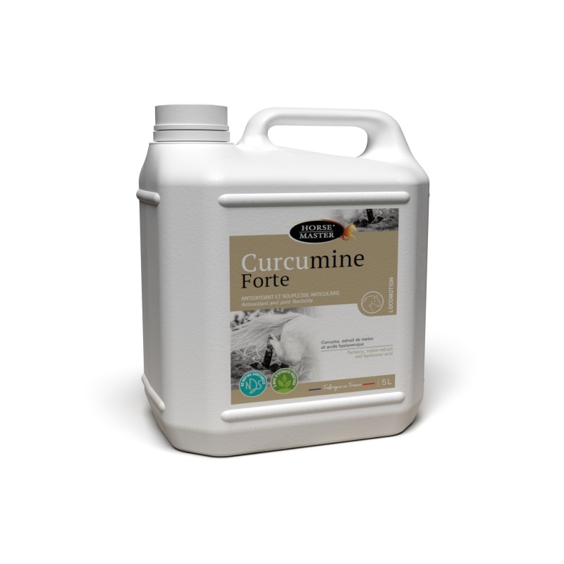 Pour répondre aux besoins des professionnels, HORSE MASTER décline sa technologie CURCUMINE FORTE en bidon de 5 litres. Cette formule nutritionnelle avant-gardiste intègre un extrait de Curcuma Longa quatre fois plus concentré que les standards habituels. Pour pallier la faible assimilation naturelle du curcuma par l'organisme équin, ce produit bénéficie d'une absorption optimisée grâce à une microencapsulation avec de la SuperOxyde Dismutase issue d'un extrait de melon. Cette innovation permet aux principes actifs de traverser l'estomac sans être dégradés, garantissant une libération optimale dans l'intestin grêle pour une efficacité démultipliée (une absorption 85 fois supérieure).