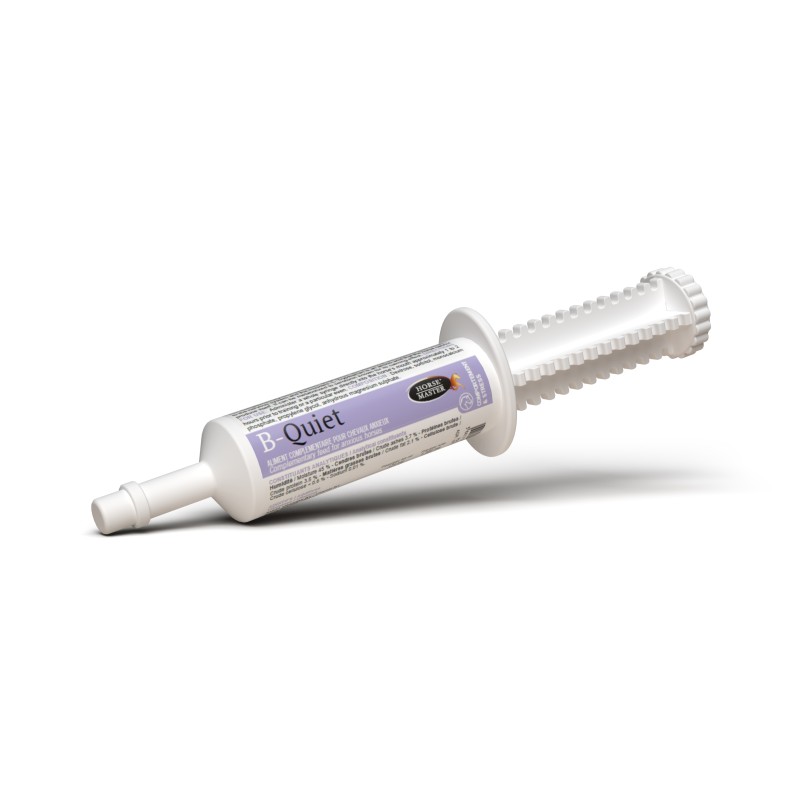 Enfin, cette formule est enrichie en vitamines du groupe B, et plus spécialement en vitamine B1, qui est mondialement connue pour son action déterminante sur le bon fonctionnement du système nerveux et la transmission des signaux cérébraux. L'avantage majeur de cette seringue B-QUIET réside dans son innocuité : elle calme l'anxiété profonde mais n'altère en rien les capacités sportives, la force ou l'énergie du cheval. L'animal reste parfaitement alerte et disponible pour l'effort qui lui est demandé.