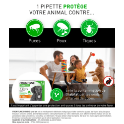 FRONTLINE Combo Spot-on Chien S en boîte de 6 pipettes répond à ces enjeux par une formulation précisément dosée pour les chiens de 2 à 10 kg, associant deux principes actifs à modes d'action complémentaires et couvrant l'intégralité du cycle parasitaire.