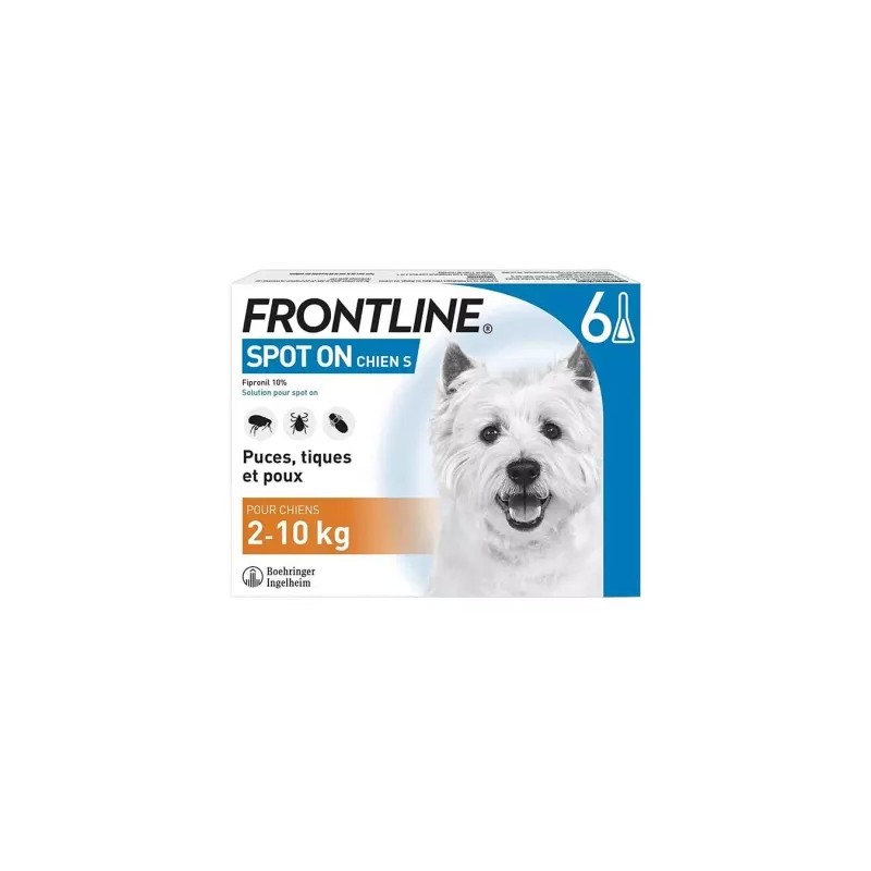 FRONTLINE Spot-On Chien S est un médicament vétérinaire antiparasitaire externe, formulé à base de fipronil, un insecticide et acaricide appartenant à la famille des phénylpyrazoles. Il agit en bloquant les récepteurs au GABA des parasites, provoquant leur hyperactivité nerveuse puis leur mort. Ce mécanisme d'action neurologique lui confère une efficacité rapide et fiable contre plusieurs espèces de parasites couramment rencontrées chez le chien.