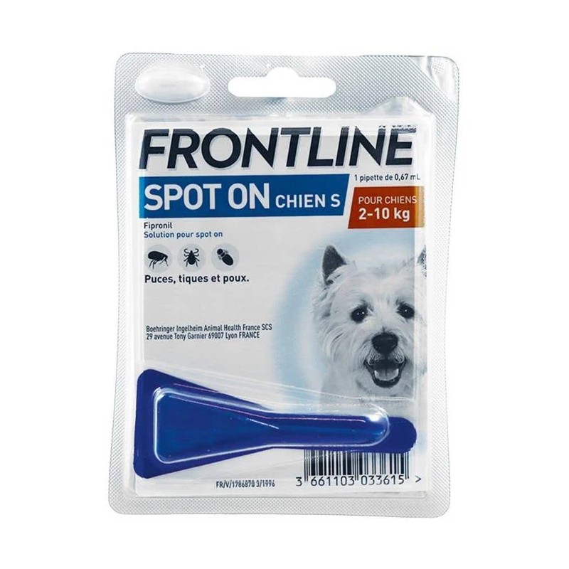 FRONTLINE Spot-On Chien S est un médicament vétérinaire antiparasitaire externe, formulé à base de fipronil, un insecticide et acaricide appartenant à la famille des phénylpyrazoles. Il agit en bloquant les récepteurs au GABA des parasites, provoquant leur hyperactivité nerveuse puis leur mort. Ce mécanisme d'action neurologique lui confère une efficacité rapide et fiable contre plusieurs espèces de parasites couramment rencontrées chez le chien.
