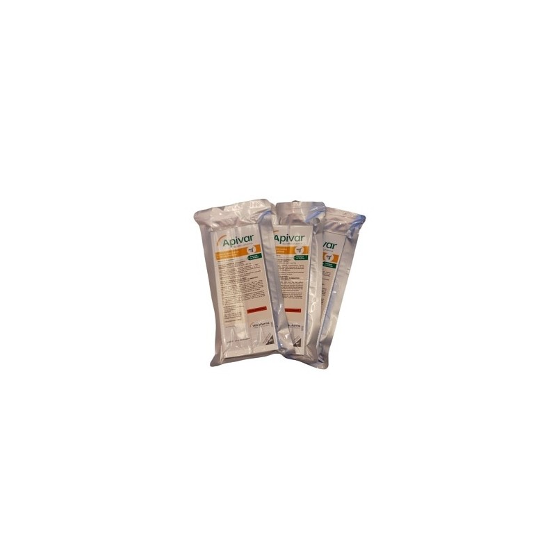 Apivar est un traitement antiparasitaire vétérinaire conçu spécifiquement pour les abeilles, qui lutte contre la varroase, causée par le Varroa destructor, un acarien redouté par les apiculteurs. Ce parasite s'attaque à l'hémolymphe des abeilles et peut provoquer l'effondrement des colonies si aucun traitement n'est mis en place. Développé par Veto-Pharma, Apivar propose une méthode simple et efficace avec ses lanières imprégnées d'amitraz, un actif reconnu pour sa capacité à éliminer les acariens adultes par contact. Les lanières doivent être placées directement dans la ruche, à proximité de la grappe d'abeilles, permettant une diffusion continue du traitement sur 6 à 10 semaines, en fonction de l'activité du couvain.